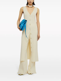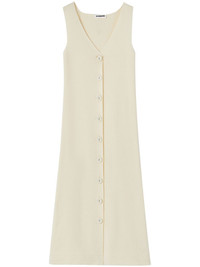 V-neck ribbed midi dress Highlights - Light beige - Cotton blend - Ribbed knit - V-neck - Front button fastening - Sleeveless - Mid-length - Straight hem Made in Italy Composition Cotton 95%, Polyamide 4%, Elastane 1% SIZE & FIT FittingInformation Designed for a relaxed fit, this piece allows for comfort and movement when worn This piece fits true to size – take your usual size Measurement HIPS 35.43 in(90 cm) LENGTH 45.66 in(116 cm) WAIST 31.49 in(80 cm) BUST 29.13 in(74 cm) Washing instructions Read Manufacturer Guidelines