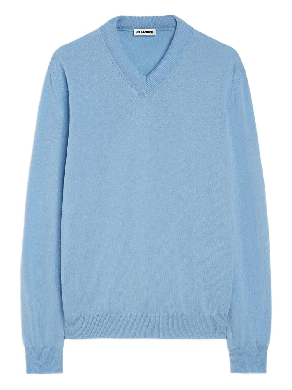 V-neck sweater Highlights - Light blue - Ribbed trims - Long sleeves - V-neck Made in Italy Composition Wool 100% Washing instructions Read Manufacturer Guidelines