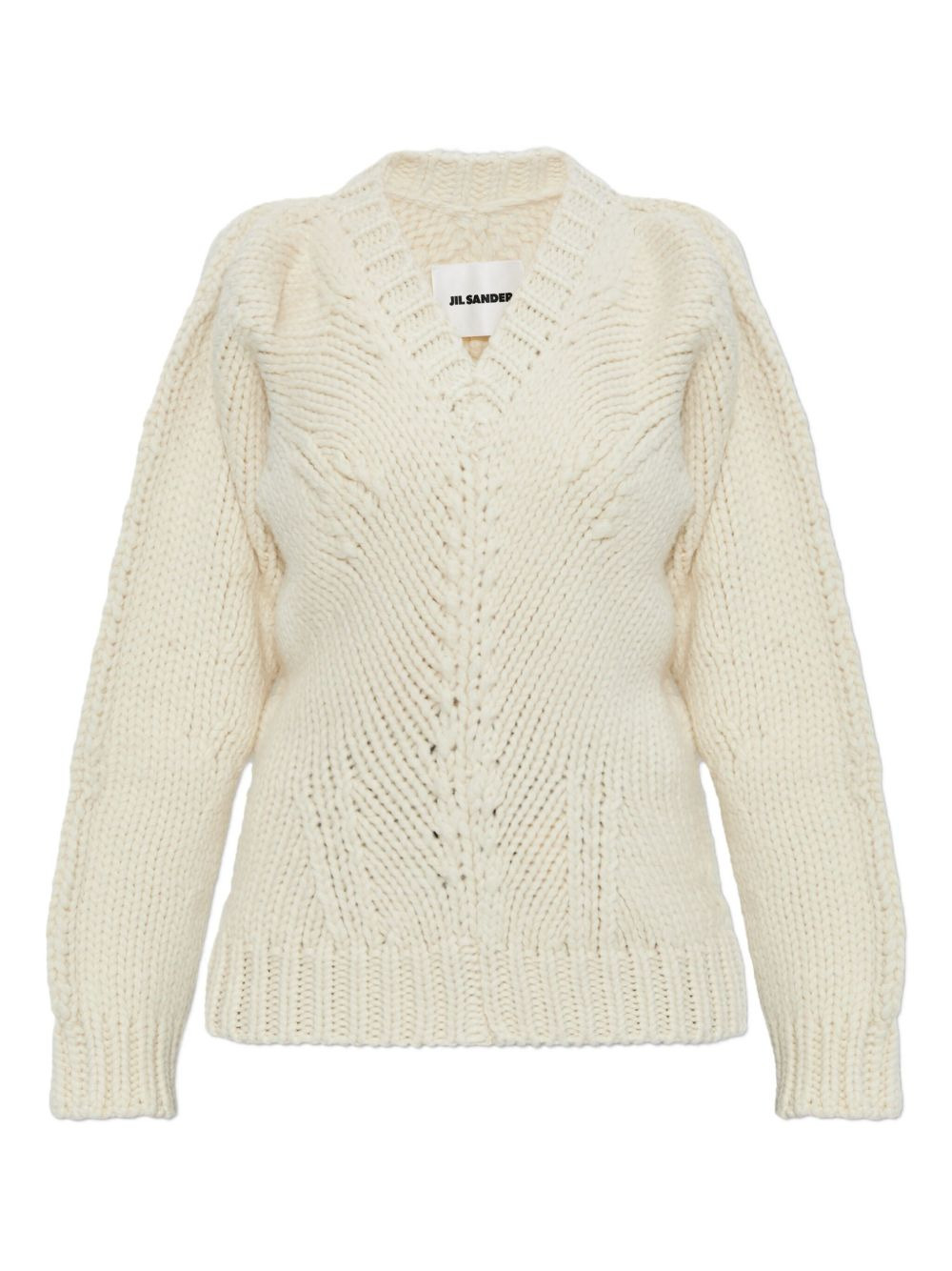V-neck wool sweater Highlights - Cream - Knitted construction - V-neck - Long sleeves Made in Italy Composition Wool 70%, Alpaca 30% Washing instructions Read Manufacturer Guidelines