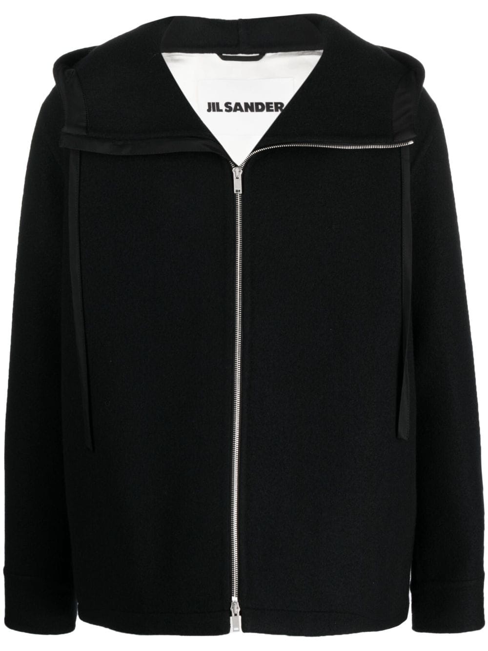 virgin-wool hooded jacket Highlights - Black - Virgin wool - Felted finish - Drawstring hood - Spread collar - Two-way zip fastening - Long sleeves - Straight hem Made in Italy Composition Lining: Viscose 100% Outer: Virgin Wool 100% SIZE & FIT Model measurements Height 6 ft 2 in(1.87 m) Bust/Chest 36.41 in(92.5 cm) Hips 35.43 in(90 cm) Waist 29.52 in(75 cm) FittingInformation Designed to be unstructured, offering a loose fit throughout Made from a midweight non-stretch fabric This piece fits true to size – take your usual size Washing instructions Dry Clean Only