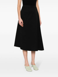 asymmetric midi skirt Highlights - Black - Virgin wool - Gabardine weave - A-line - Asymmetric flared hem - Concealed side hook and zip fastening Made in Italy Composition Virgin Wool 100% SIZE & FIT Model measurements Height 5 ft 11 in(1.8 m) Bust/Chest 33.07 in(84 cm) Hips 37 in(94 cm) Waist 25.59 in(65 cm) Measurement HIPS 42.51 in(108 cm) LENGTH 32.28 in(82 cm) WAIST 27.55 in(70 cm) FittingInformation Designed with an asymmetric hem, this skirt is intended to be worn high on the waist Made from a midweight non-stretch fabric This piece fits true to size – take your usual size Washing instructions Dry Clean Only