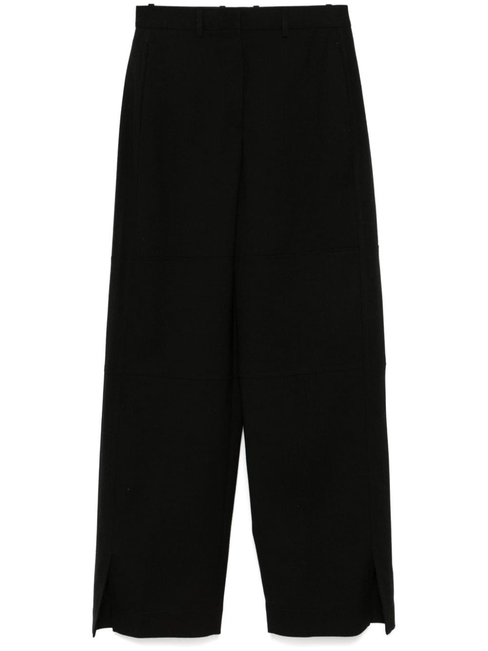 virgin-wool trousers Highlights - Black - Virgin wool - Interlock weave - Panelled design - Concealed front button, hook and zip fastening - Belt loops - Two side inset pockets - Two rear welt pockets - Short side slits - Wide leg Made in Italy Composition Lining: Cotton 100%, Viscose 95%, Spandex/Elastane 5% Outer: Virgin Wool 100% SIZE & FIT Model measurements Height 5 ft 10 in(1.77 m) Bust/Chest 32.28 in(82 cm) Hips 35.03 in(89 cm) Waist 25.19 in(64 cm) FittingInformation Designed with a wide-leg cut, these trousers allow for a close fit at the waist and offer a loose and roomy fit over the leg Made from a midweight non-stretch fabric