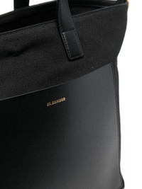 Wander square tote bag Following the brand's timeless aesthetic, this Wander tote bag by Jil Sander's is crafted from a combination of canvas and leather. The accessory comes with a detachable shoulder strap and two top handles so it can be worn by hand or by the shoulder. Highlights - Black - Canvas/calf leather - Logo stamp to the front - Flat top handles - Top zip fastening - Slip pocket to the front - Adjustable detachable shoulder strap Made in Italy Composition Outer: Calf Leather 100%, Fabric 100% SIZE & FIT Model measurements Height 5 ft 11 in(1.8 m) Bust/Chest 31.49 in(80 cm) Hips 36.61 in(93 cm) Waist 24.4 in(62 cm) Measurement DEPTH 6.29 in(16 cm) HANDLE 4.72 in(12 cm) HEIGHT 9.84 in(25 cm) STRAP 16.92 in(43 cm) WIDTH 15.74 in(40 cm)