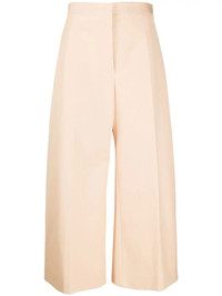 wide-leg tailored trousers Time for an office attire update. Cut with a wide leg, these cropped tailored trousers from Jil Sander are the perfect choice for a smart-casual look that doesn't compromise on style. Don't let them get away. Highlights - Rose pink - Cotton - High waist - Concealed front fastening - Two side slit pockets - Tailored cut - Wide leg - Cropped leg Made in Italy Composition Outer: Cotton 100% Lining: Cotton 100% SIZE & FIT Model measurements Height 5 ft 10 in(1.78 m) Bust/Chest 34.25 in(87 cm) Hips 35.03 in(89 cm) Waist 26.37 in(67 cm) FittingInformation This piece fits true to size. We recommend you get your regular size Designed to be fitted at the waist and hips, loose over the leg Made with a mid-weight non-stretch fabric Washing instructions Dry Clean Only