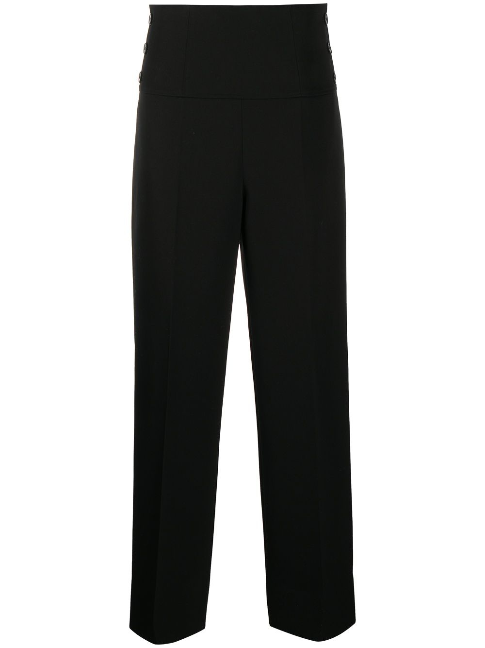 wide-leg tailored trousers Life isn't always black and white but your outfits can be. Cut with a wide leg, these high-waisted trousers from Jil Sander are all you need for a refined smart look. Pretty easy, isn't it? Highlights - Black - Wool - High waist - Side button fastening - Two side slit pockets - Pressed crease - Wide leg Made in Italy Composition Lining: Cotton 100%, Viscose 65%, Polyester 35% Outer: Wool 100% SIZE & FIT Model measurements Height 5 ft 10 in(1.78 m) Bust/Chest 33.07 in(84 cm) Hips 33.07 in(84 cm) Waist 24.4 in(62 cm) FittingInformation This piece fits true to size. We recommend you get your regular size Designed to be fitted at the waist and hips, loose over the leg Made with a mid-weight non-stretch fabric Washing instructions Dry Clean Only