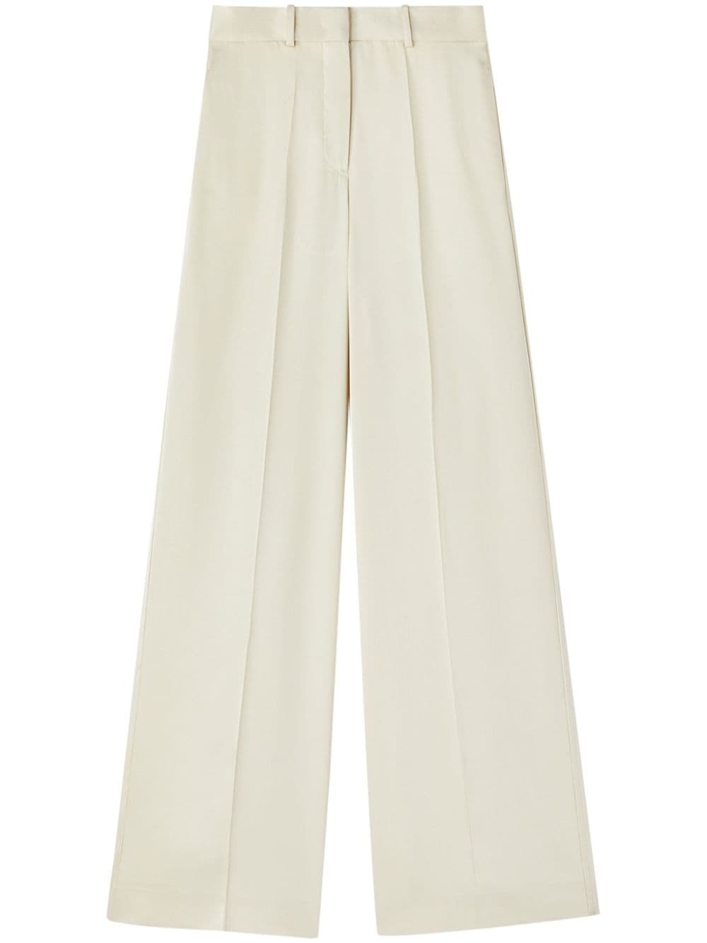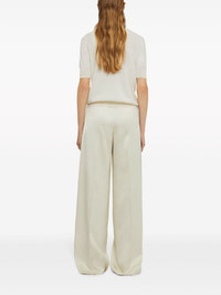 wide-leg tailored trousers Highlights - Light beige - Silk blend - High-waisted - Belt loops - Concealed front fastening - Slip pockets to the sides - Wide leg Made in Italy Composition Viscose 83%, Silk 17% SIZE & FIT FittingInformation Designed with a wide-leg cut, these trousers allow for a close fit at the waist and offer a loose and roomy fit over the leg This piece fits true to size – take your usual size Washing instructions Read Manufacturer Guidelines