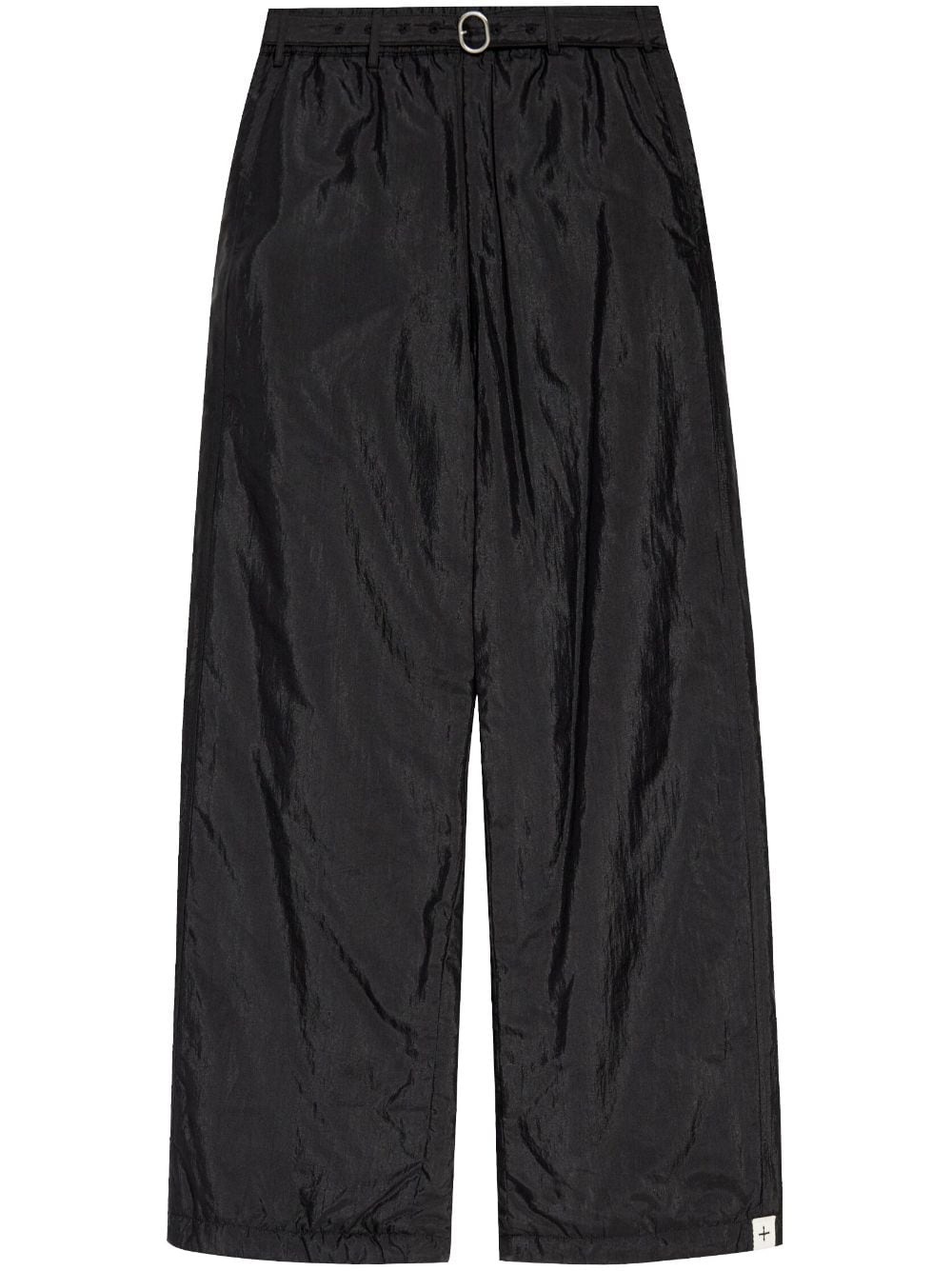 wide-leg trousers Highlights - Black - High-shine finish - Elasticated waistband - Belted waist - Belt loops - Two side inset pockets - Logo patch to the side - Rear patch pocket - Wide leg Made in Italy Composition Polyamide 100%