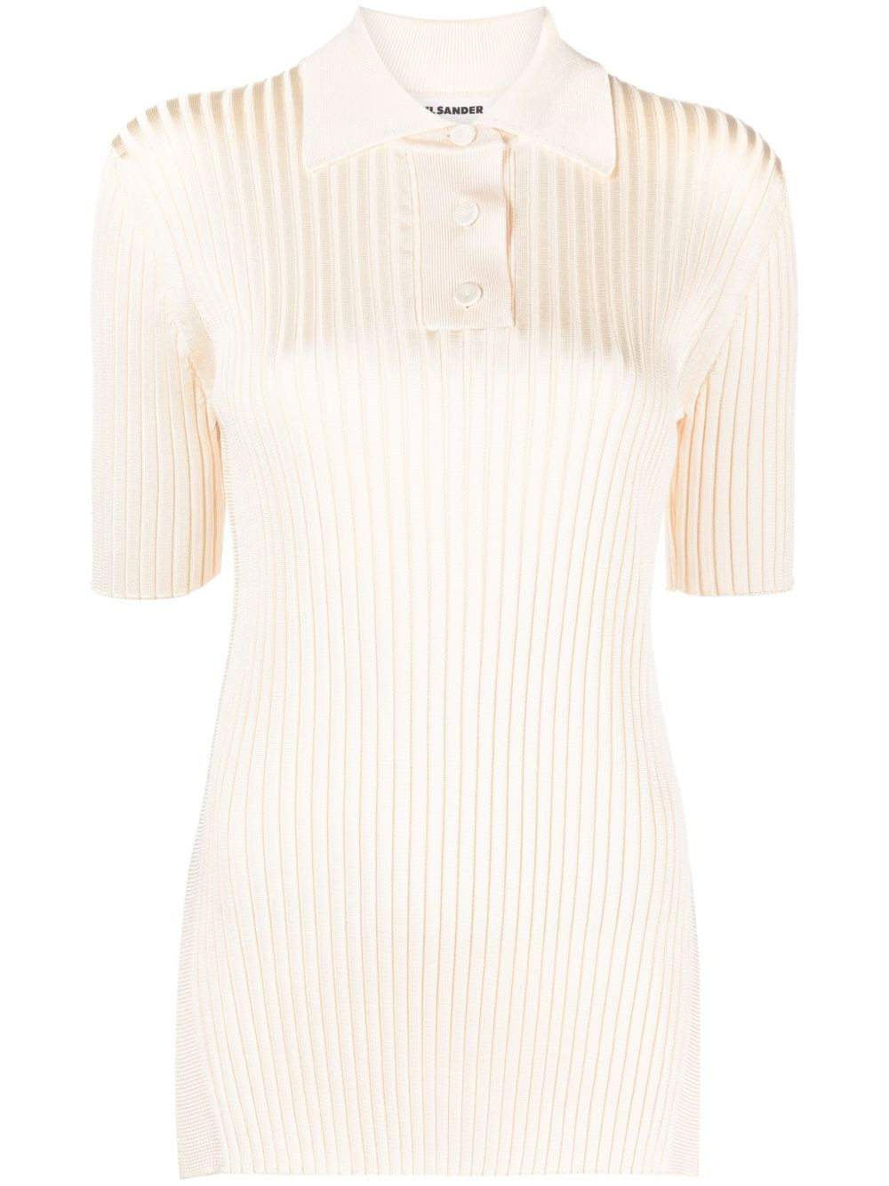 wide-ribbed polo shirt Highlights - Ivory white - Wide ribbed - Side slits - Slim cut - Polo collar - Short front button fastening - Half-length sleeves - Straight hem Made in Italy Composition Viscose 100% SIZE & FIT Model measurements Height 5 ft 10 in(1.79 m) Bust/Chest 32.67 in(83 cm) Hips 34.25 in(87 cm) Waist 24.4 in(62 cm) FittingInformation Designed for a close fit throughout Made with a midweight knit, this piece offers some stretch This piece fits true to size – take your usual size Washing instructions Dry Clean Only