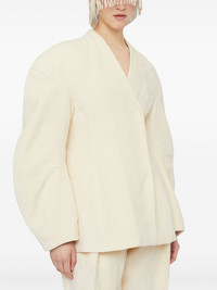 wool-blend jacket Highlights - Beige - Wool blend - Long sleeves - V-neck - Oversize arms Made in Italy Composition Alpaca Wool 55%, Virgin Wool 43%, Polyamide 1%, Spandex/Elastane 1%