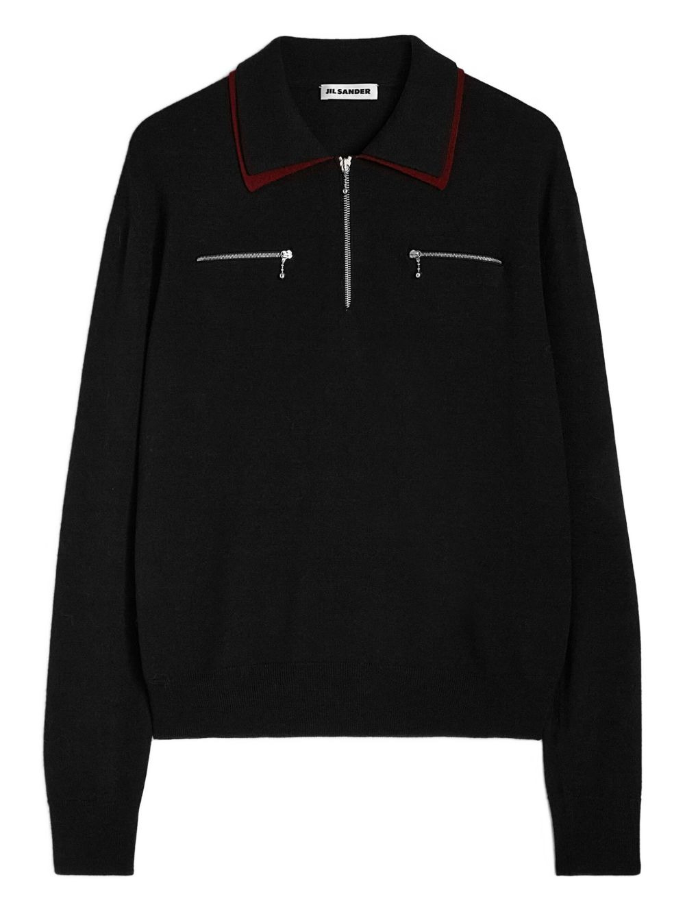 wool polo shirt Highlights - Black - Half front zip fastening - Two zip-fastening chest pockets - Long sleeves Made in Italy Composition Virgin Wool 100%