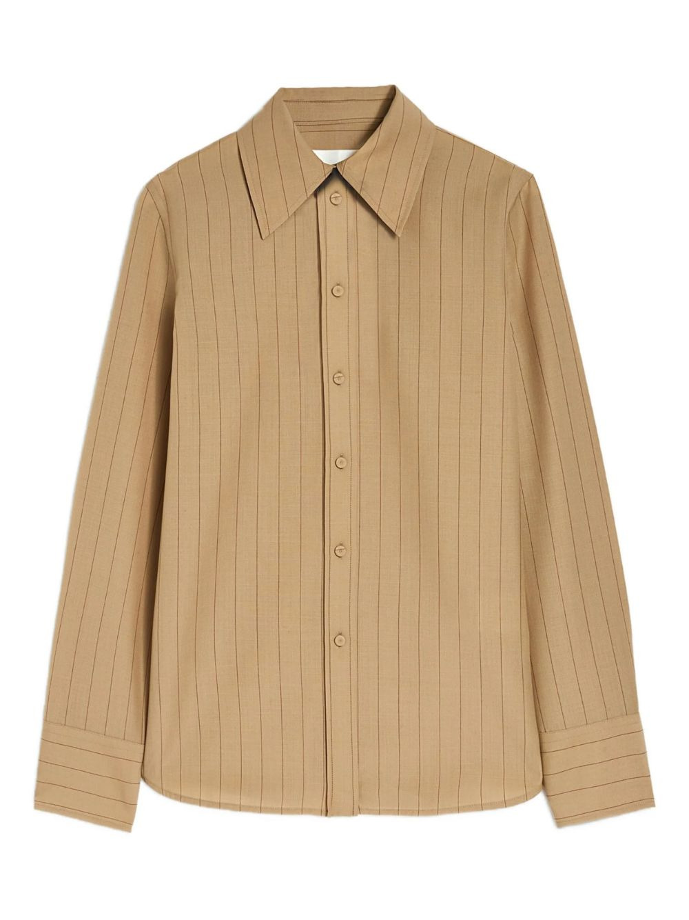 wool shirt Highlights - Caramel brown - Front button fastening - Vertical stripe pattern - Straight-point collar - Long sleeves Made in Italy Composition Wool 100% Washing instructions Read Manufacturer Guidelines