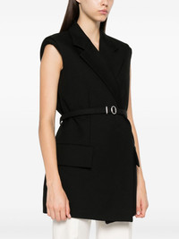 wool sleeveless coat Highlights - Black - Wool - Twill weave - Notched lapels - Removable shoulder pads - Sleeveless - Detachable belt - Two side flap pockets - Multiple internal slip pockets - Full lining - Double-breasted button fastening Made in Italy Composition Outer: Calf Leather 100%, Wool 100% Lining: Viscose 100% SIZE & FIT Model measurements Height 5 ft 10 in(1.78 m) Bust/Chest 33.85 in(86 cm) Hips 36.61 in(93 cm) Waist 26.77 in(68 cm) FittingInformation Designed to be unstructured, offering a loose fit throughout The internal shoulder pads offer a structured shape Made from a midweight non-stretch fabric This piece fits true to size – take your usual size