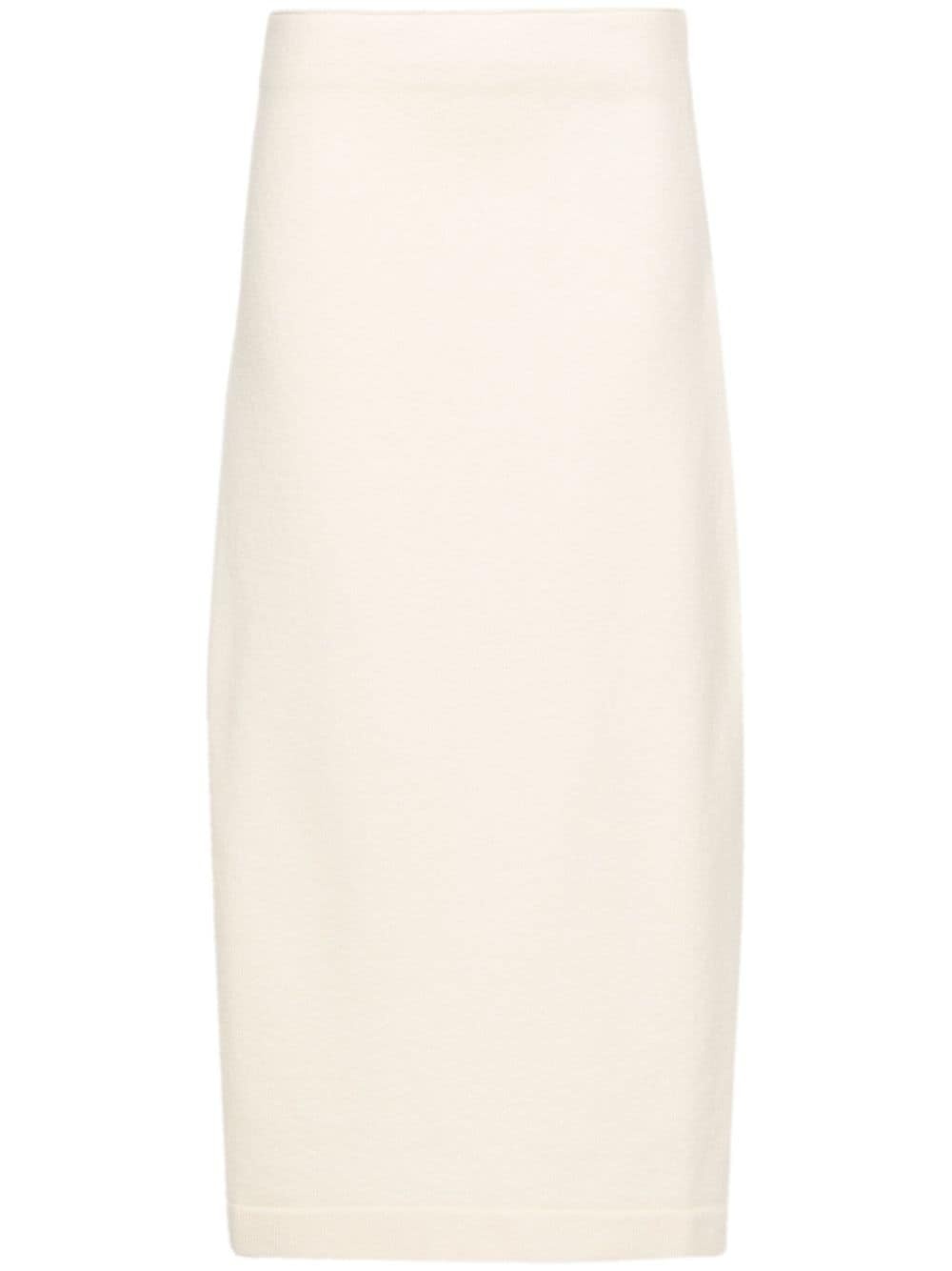asymmetric wool midi skirt Highlights - Ivory white - Wool - Knitted construction - A-line - Mid-length - Asymmetric step-hem - Concealed side hook and zip fastening Made in Italy Composition Wool 100% SIZE & FIT Model measurements Height 5 ft 11 in(1.8 m) Bust/Chest 31.49 in(80 cm) Hips 36.61 in(93 cm) Waist 24.4 in(62 cm) FittingInformation Designed with an asymmetric hem, this skirt is intended to be worn high on the waist Made with a midweight knit, this piece offers some stretch This piece fits true to size – take your usual size Washing instructions Dry Clean Only