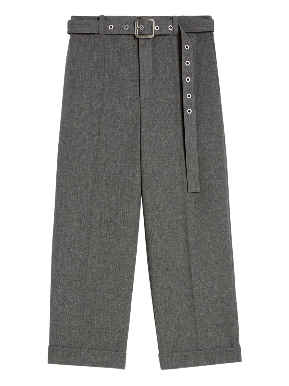 wool trousers Highlights - Medium grey - Concealed front fastening - Belted waist - Two side slash pockets - Two rear welt pockets Made in Italy Composition Wool 100% Washing instructions Read Manufacturer Guidelines