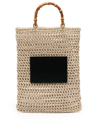 woven bamboo-handle tote bag