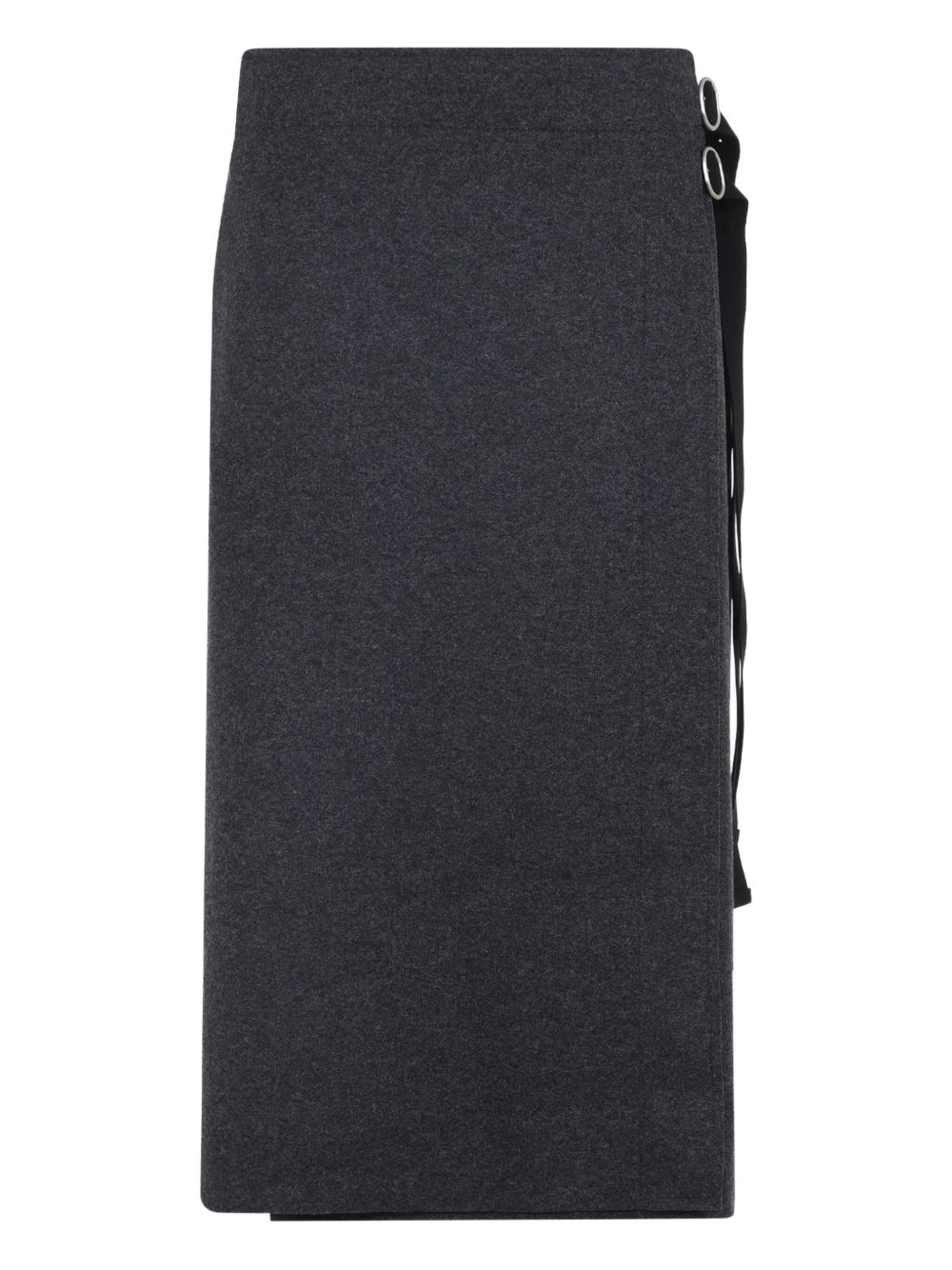 wrap-tie wool midi skirt Highlights - Dark grey - Wrap-around design - Tie fastening - Metal ring detail - Straight hem - Wool Made in Italy Composition Wool 100% Washing instructions Read Manufacturer Guidelines