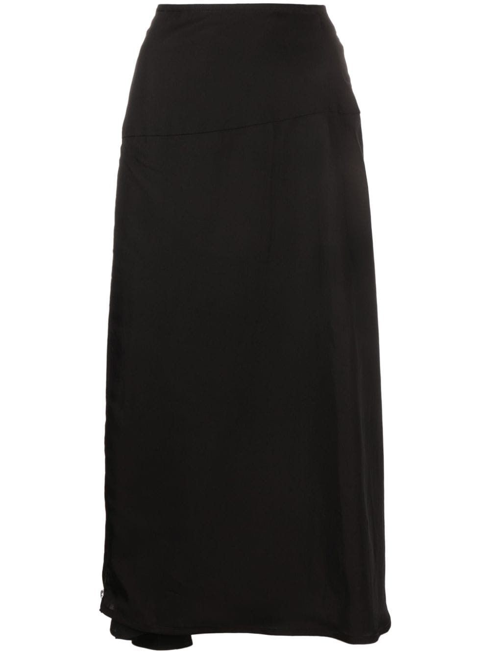 off-centre zip-fastening midi skirt A showcase of the label’s considered eye for minimalist design, this Jil Sander midi skirt is defined by a side zip that expands to reveal a pleated panel for added volume. It’s cut from low-impact viscose that’s woven with silk threads and cut with a drop waist. Highlights - Black - Zip detail - Pleat detailing - Asymmetric hem - Mid-length Made in Italy Composition Viscose 67%, Silk 33% SIZE & FIT Model measurements Height 5 ft 10 in(1.77 m) Bust/Chest 32.28 in(82 cm) Hips 35.03 in(89 cm) Waist 25.19 in(64 cm) FittingInformation This maxi-length skirt is intended to be worn high on the waist Made from a midweight non-stretch fabric This piece fits true to size – take your usual size Washing instructions Dry Clean Only