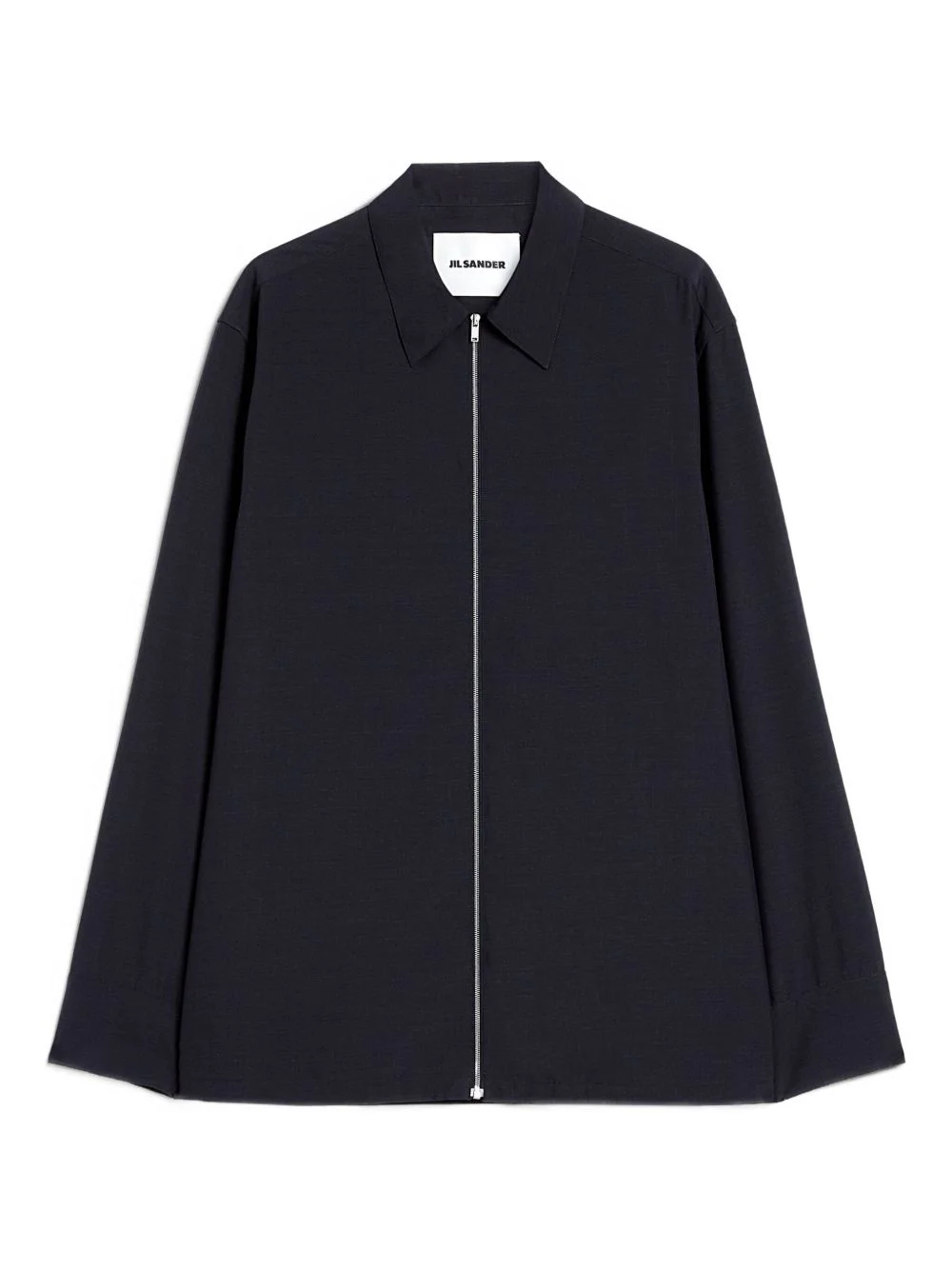 zip long-sleeve wool shirt Highlights - Dark blue - Pointed collar - Front zip closure - Buttoned cuffs Made in Italy Composition Virgin Wool 100% Washing instructions Read Manufacturer Guidelines