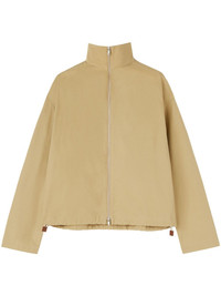 zip-up cotton bomber jacket Highlights - Beige - Cotton - Logo patch to the rear - Stand-up collar - Drop shoulder - Long sleeves - Front two-way zip fastening - Drawstring hem Made in Italy Composition Cotton 100% SIZE & FIT FittingInformation This piece fits very large – take two sizes down