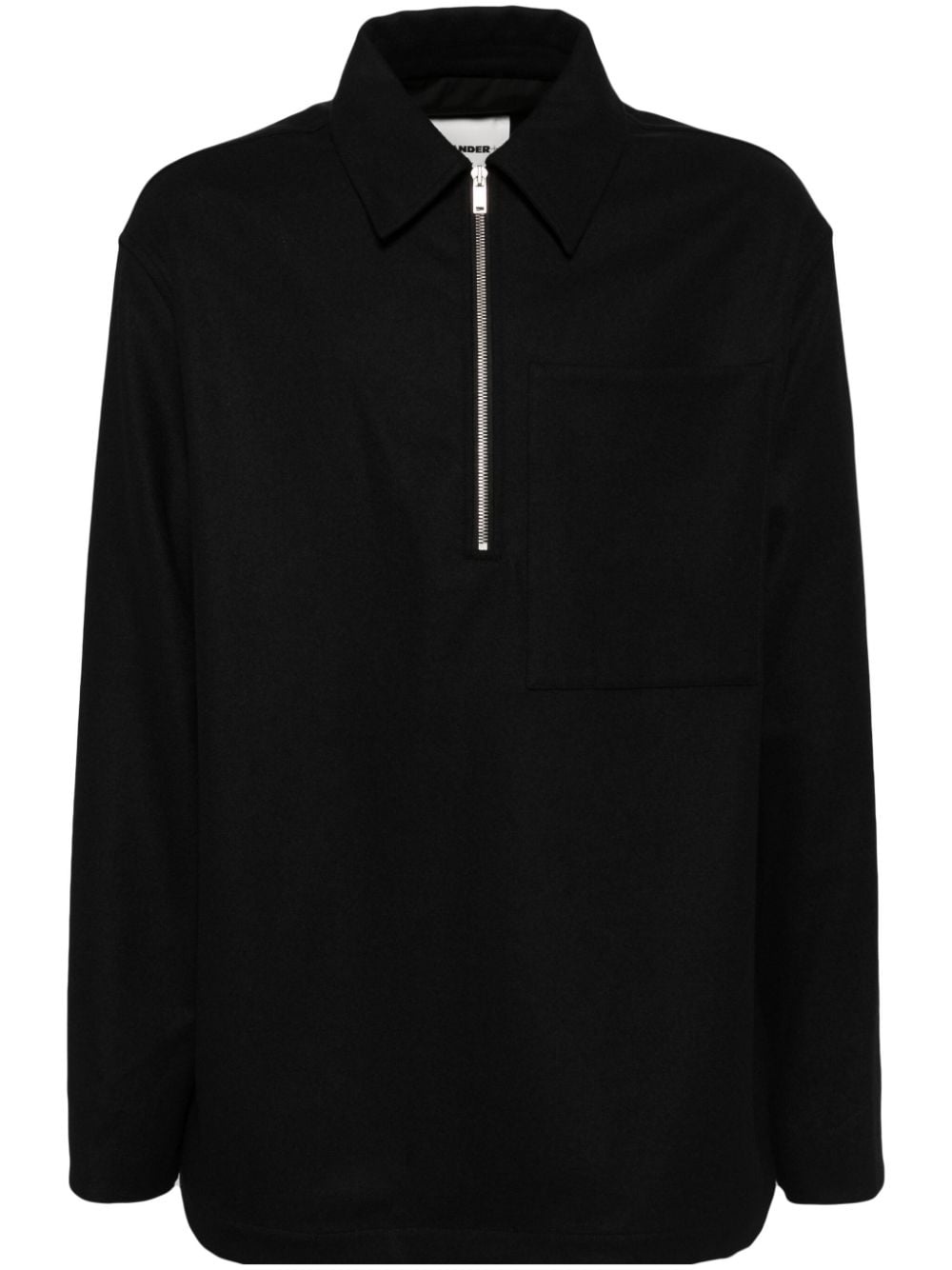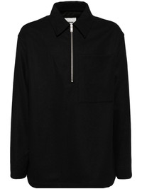 zip-up sweatshirt Highlights - Black - Virgin wool - Short front zip fastening - Classic collar - Chest patch pocket - Long sleeves - Buttoned cuffs - Short side slits - Straight hem Made in Italy Composition Lining: Viscose 100% Outer: Virgin Wool 100% SIZE & FIT Model measurements Height 6 ft 2 in(1.87 m) Bust/Chest 33.07 in(84 cm) Hips 35.43 in(90 cm) Waist 26.77 in(68 cm) FittingInformation Designed to be unstructured, offering a loose fit throughout Made from a midweight non-stretch fabric