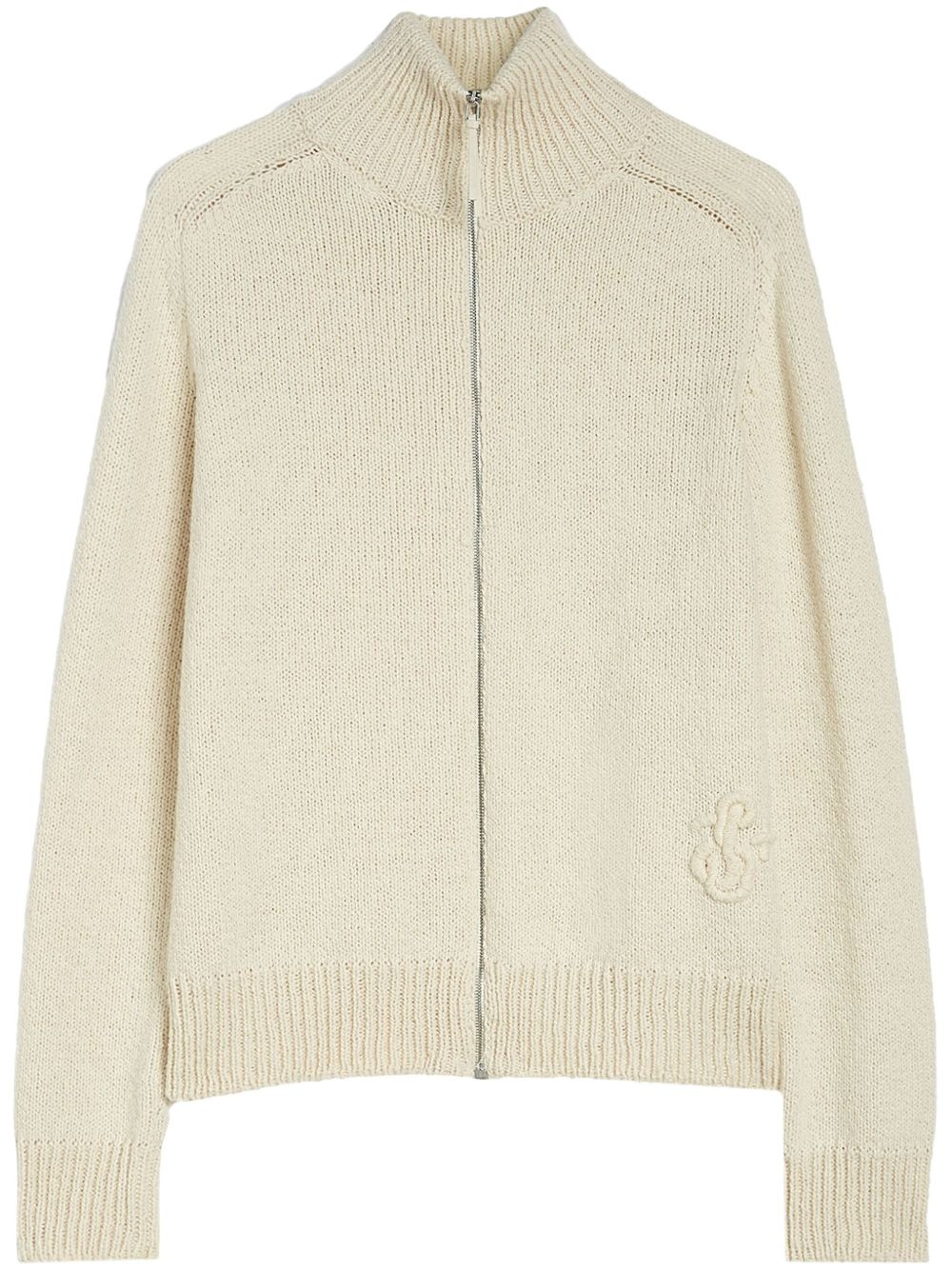 zipped cardigan Highlights - Off-white - Cotton-wool blend - Front zip fastening - Stand-up collar - Long sleeves - Ribbed cuffs and hem Made in Italy Composition Cotton 57%, Wool 43%