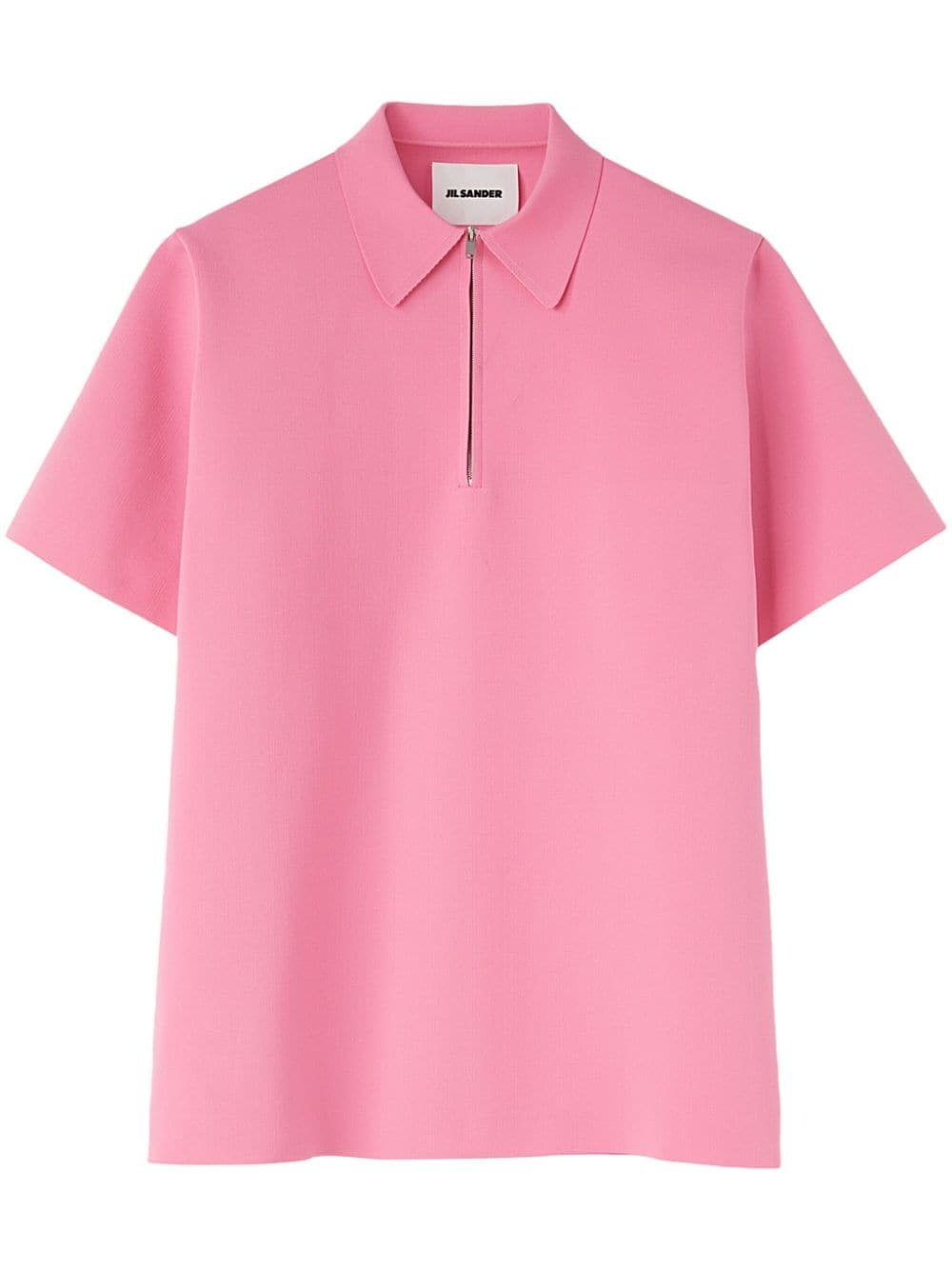 zipped polo shirt Highlights - Rose pink - Polo collar - Short front zip fastening - Short sleeves - Straight hem Made in Italy Composition Polyester 100% SIZE & FIT FittingInformation Designed for an oversized fit, offering additional room throughout This piece fits large – take one size down Washing instructions Read Manufacturer Guidelines