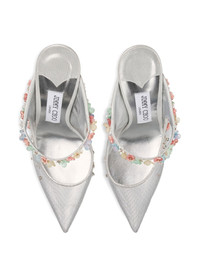 Bing Daisy 100 Silver Metallic Mesh Mule with Floral Embellishments