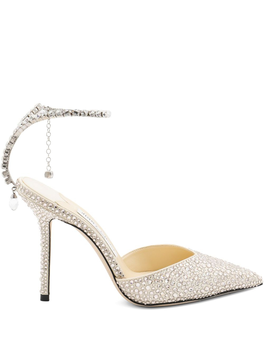 100mm Saeda crystal-embellished pumps Highlights - Beige - Leather - Crystal embellished - Pointed toe - Crystal ankle-strap Made in Italy Composition Lining: Calf Leather 100% Outer: Crystal 100%, Calf Leather 100% Sole: Calf Leather 100% SIZE & FIT Measurement HEEL 4 in(10.1 cm)