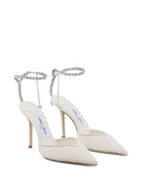 100mm Saeda pumps Highlights - White - Buckle-fastening ankle strap - High stiletto heel - Branded footbed - Crystal-embellished ankle strap Made in Italy Composition Lining: Fabric 100%, Calf Leather 100% Outer: Crystal 100%, Fabric 100% Sole: Calf Leather 100%