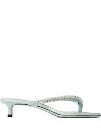 35mm crystal-embellished heeled mules Highlights - Light green - Crystal embellishment - Slip-on style - Branded insole - Open toe - Kitten heel Made in Italy Composition Lining: Nappa Leather 100% Outer: Satin 100% Sole: Nappa Leather 100% SIZE & FIT Measurement HEEL 1.37 in(3.5 cm)