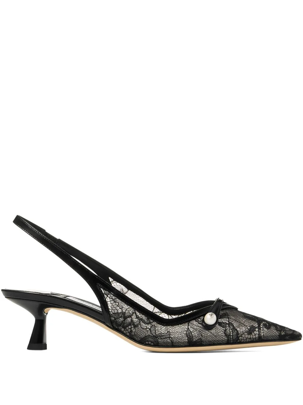 45 mm Amita lace-embellishment pumps Highlights - Black - Lace overlay - Pointed toe - 45mm heel - Slingback strap Made in Italy Composition Outer: Fabric 74%, Leather 15%, Salpa 5%, Plastic 4%, Metal 2% Lining: Calf Leather 100% Sole: Calf Leather 100% SIZE & FIT Measurement HEEL 1.77 in(4.5 cm)