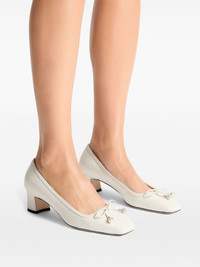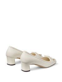 45mm Elme nappa leather pumps Highlights - Latte white - Nappa leather - Bow detailing - Crystal embellishment - Faux-pearl embellishment - Square toe - Slip-on style - Branded leather insole - 45mm angled block heel - Leather sole Made in Italy Composition Lining: Leather 100% Sole: Leather 100% Outer: Leather 100% SIZE & FIT Measurement HEEL 1.77 in(4.5 cm)