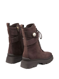 45mm Noemi lace-up combat boots Highlights - Brown - Suede leather - Lace-up fastening - Pearl-adorned strap Made in Italy Composition Lining: Calf Leather 100% Sole: Rubber 100% Outer: Suede 100% SIZE & FIT Measurement HEEL 1.77 in(4.5 cm)