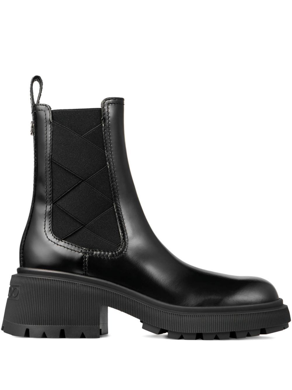 50mm Louri Combat leather boots Highlights - Black - Leather upper - Woven textile panel - Block heel - Rubber sole Made in Italy Composition Lining: Leather 100% Outer: Leather 100% Sole: Rubber 100% SIZE & FIT Measurement HEEL 1.96 in(5 cm)