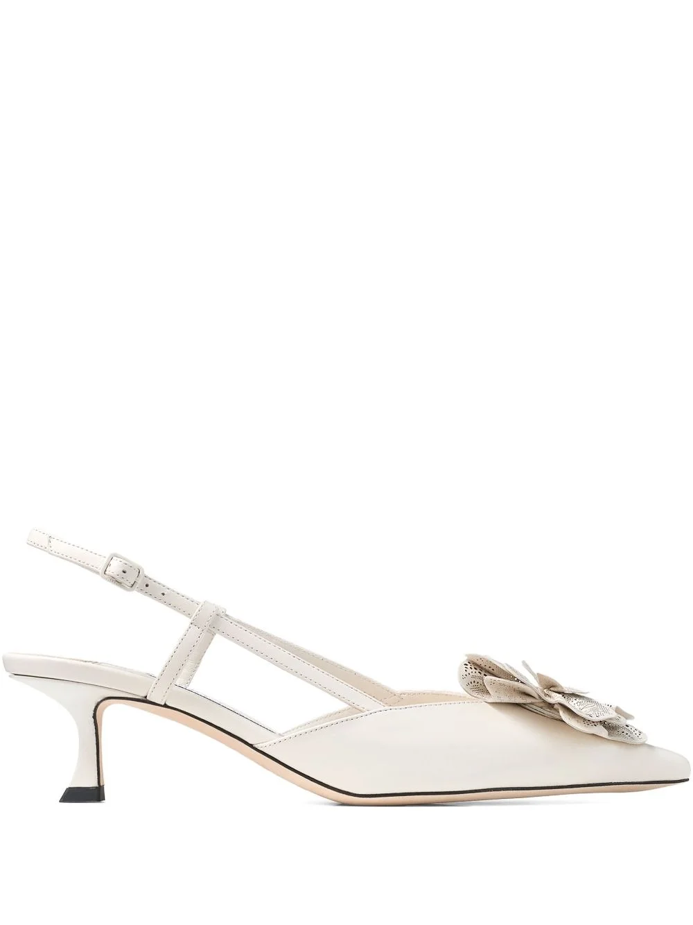50mm Mimmi flower sling back pumps Highlights - White - Flower detail - Slingback strap - Pointed toe - Leather sole Made in Italy Composition Outer: Nappa Leather 100% Lining: Calf Leather 100% Sole: Calf Leather 100%