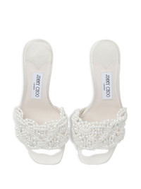 Cary Mule 70 Ivory Satin Mule Sandal with Pearl Embellishments