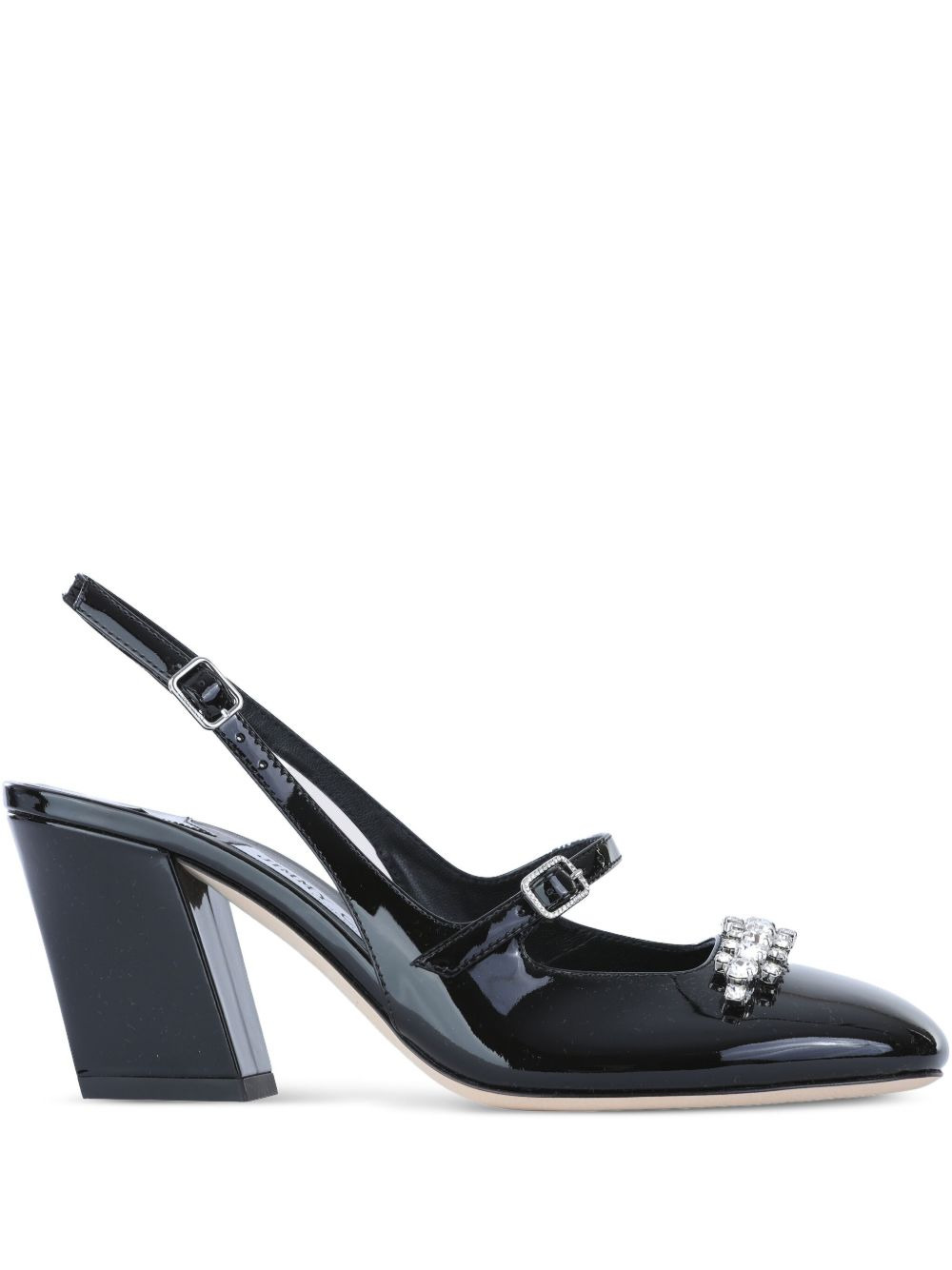 85mm Belinda crystal-embellished slingback pumps Highlights - Black - Patent leather - Slingback strap - Buckle fastening - Crystal embellishment - Block heel Made in Italy Composition Sole: Calf Leather 100% Lining: Calf Leather 100% Outer: Patent Calf Leather 100% SIZE & FIT Measurement HEEL 3.34 in(8.5 cm)