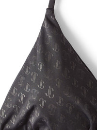 Ariah logo-print bikini top Jimmy Choo embraces logomania trends in the decoration of the Ariah bikini top. Crafted from a blend of ECONYL® and lycra, it features the signature JC monogram all over and is Italian-crafted in black to a triangle cup. Highlights - Black - Econyl® - Stretch-design - Monogram print - Gold-tone hardware - Triangle cup - Tie-fastening straps - Be mindful to try on swimwear over your own garments. Made in Italy Composition ECONYL® 78%, Lycra 22% Washing instructions Read Manufacturer Guidelines