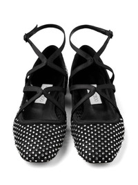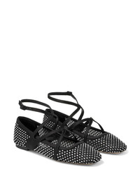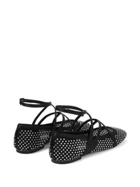 Astoria ballet flats Highlights - Black - Mesh design - Buckle-fastening ankle strap - Glass crystal embellishment - Leather trim - Square toe - Branded leather footbed - Flat leather sole - Rubber outsole Made in Italy Composition Sole: Calf Leather 95%, Rubber 5% Lining: Polyamide 80%, Lamb Skin 20% Outer: Fabric 95%, Lamb Skin 5%