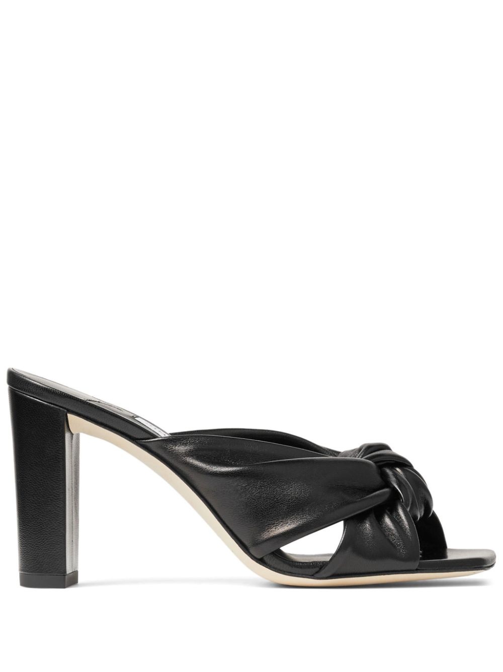 85mm Avenue leather sandals Jimmy Choo presents the iconic Avenue sandals, now with an 85mm high heel. Two straps crafted from black leather connect in a knot detail on the Italian-made Avenue sandals, granting them a distinctive look. Highlights - Black - Leather - Knot detailing - Open toe - Square toe - Slip-on style - Branded insole - 85mm high heel Made in Italy Composition Sole: Leather 100% Outer: Nappa Leather 100% Lining: Calf Leather 100% SIZE & FIT Measurement HEEL 3.34 in(8.5 cm)