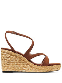 Ayla 85mm wedge sandals Highlights - Chocolate brown - Suede - Logo plaque to the rear - Thin straps - Braided raffia wedge heel - Square open toe - Leather lining - Buckle-fastening ankle strap - Branded footbed - Rubber sole - 85mm high wedge heel Imported Composition Suede 100% SIZE & FIT Measurement HEEL 3.34 in(8.5 cm) Sole height 0.78 in(2 cm)