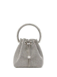 Bon Bon bracelet bag Satisfy your sweet tooth with Jimmy Choo. Crafted with shiny crystal embellishments, the brand’s Bon Bon bag boasts a drawstring fastening with tassel chain trims. Sugarcoat your outfit. Highlights - Silver-tone - Crystal embellishment - Single rounded top handle - Drawstring fastening - Chain-link shoulder strap - Draped tassel detailing - Silver-tone hardware - Wardrobe icon Made in Italy Composition Outer: Fabric 55%, Brass 35%, Crystal 10% Lining: Viscose 68%, Silk 32%