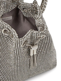 Bon Bon Silver Satin Crystal Mesh Bag with Crystal Handle