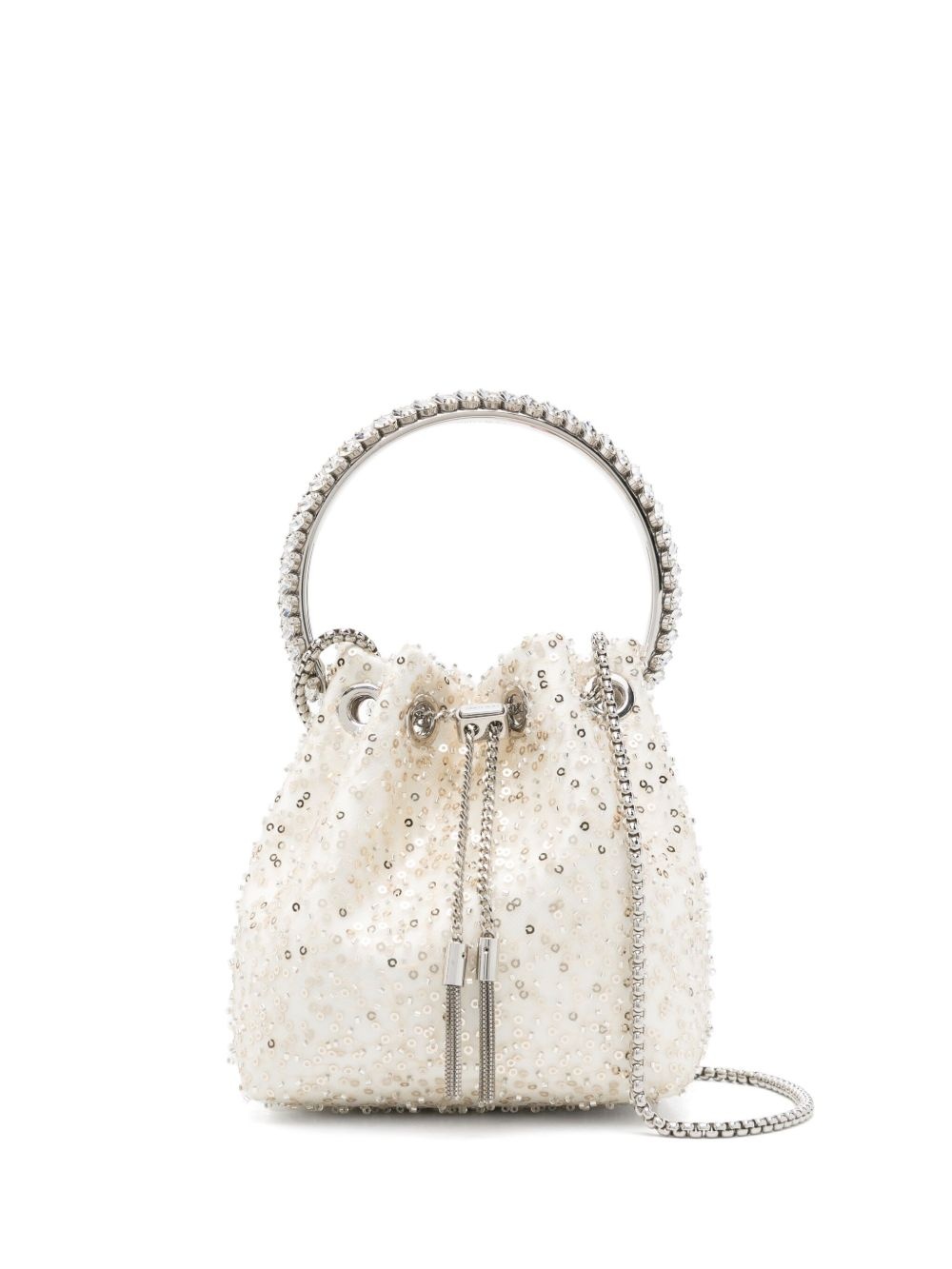 Bon Bon bucket bag Highlights - White - Top drawstring fastening - Single circular top handle - Detachable chain-link shoulder strap - Sequin embellishment Made in Italy Composition Crystal 100% SIZE & FIT Model measurements Height 5 ft 10 in(1.78 m) Bust/Chest 33.46 in(85 cm) Hips 36.22 in(92 cm) Waist 23.22 in(59 cm) Measurement DEPTH 3.93 in(10 cm) HEIGHT 5.9 in(15 cm) WIDTH 6.29 in(16 cm)