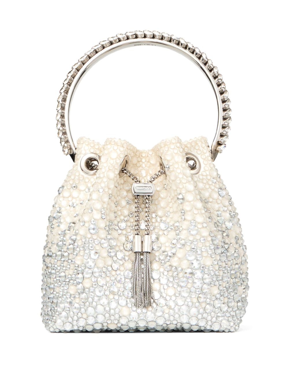 Bon Bon bucket bag Highlights - White - Top drawstring fastening - Single metallic top handle - Detachable chain-link shoulder strap - Internal logo patch Made in Italy Composition Outer: Crystal 100%, Satin 100% SIZE & FIT Measurement DEPTH 3.74 in(9.5 cm) HEIGHT 5.9 in(15 cm) WIDTH 5.51 in(14 cm)