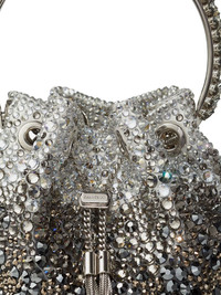 Bon Bon crystal-embellished shoulder bag Highlights - Silver-tone - Satin finish - Crystal embellishment - Single metallic top handle - Detachable chain-link shoulder strap - Drawstring fastening - Main compartment Made in Italy Composition Satin 100%, Crystal 100% SIZE & FIT Measurement DEPTH 3.74 in(9.5 cm) HEIGHT 5.9 in(15 cm) WIDTH 5.51 in(14 cm) STRAP 21.65 in(55 cm)