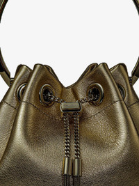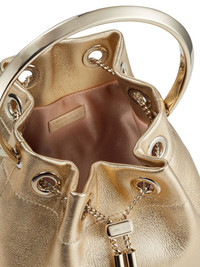 Bon Bon metallic-finish bucket bag Highlights - Gold-tone - Lambskin - Metallic finish - Tassel detail - Drawstring fastening - Single circular top handle - Detachable chain-link shoulder strap - Main compartment - Wardrobe icon Made in Italy Composition Outer: Lambskin 80%, Brass 20%