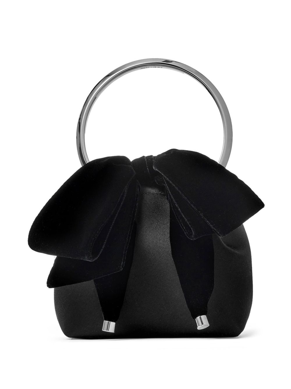 Bon Bon Black Satin Bucket Bag with Velvet Bow