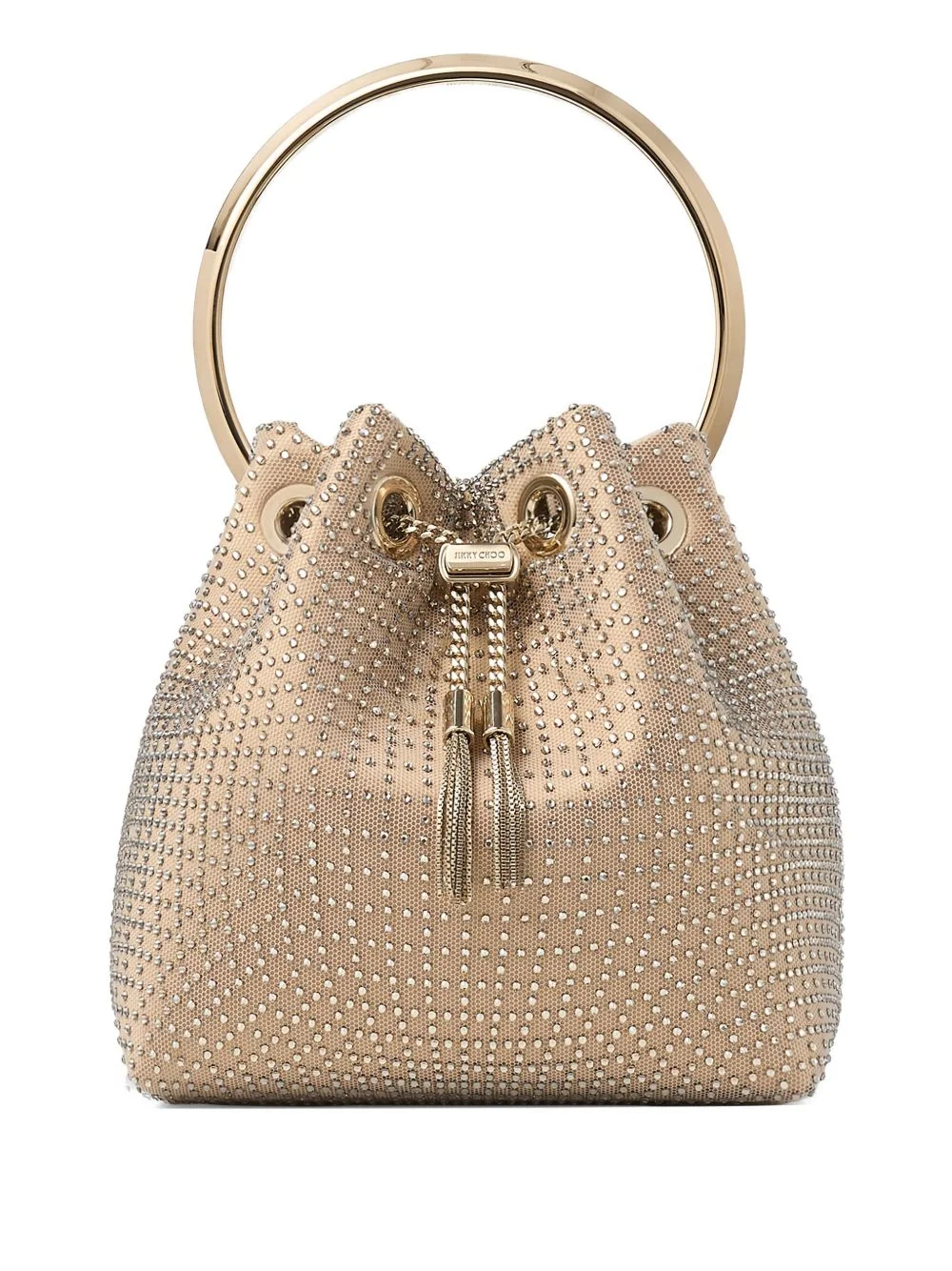 Bon Bon shoulder bag Highlights - Light gold-tone - Crystal embellished - Ring top handle - Chain shoulder strap - Drawstring fastening - Tassel detail Made in Italy Composition Outer: Technical Fabric 60%, Brass 40%
