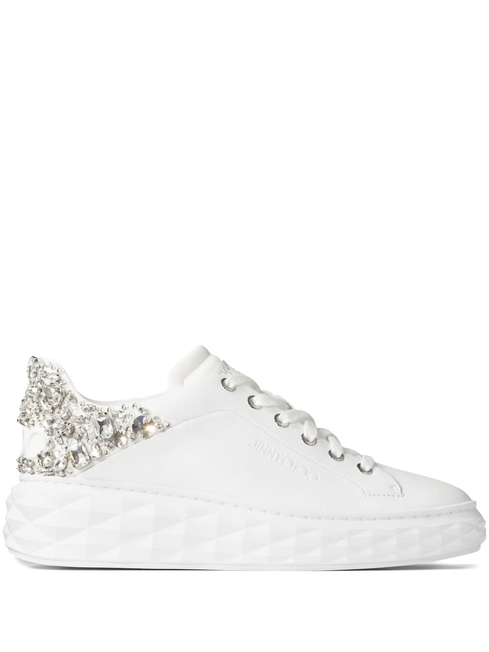 Diamond Maxi crystal-embellished sneakers Highlights - White - Nappa leather - Crystal embellishment - Logo-embossed tongue - Round toe - Front lace-up fastening - Branded insole - Signature diamond sole Made in United Kingdom Composition Leather 100%